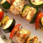 - Prepare the Kabobs: Thread the marinated chicken, zucchini slices, onion wedges, red bell pepper pieces, and cherry tomatoes onto the skewers.