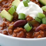 - Serve and Garnish: Ladle the chili into bowls and top each serving with a dollop of sour cream, a sprinkle of green onions, and a generous handful of shredded Cheddar cheese.