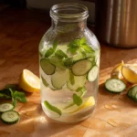 Serve this detox water in tall glasses over ice. You can add extra mint leaves or a slice of lemon on the rim for a pretty touch. It’s perfect for summer parties or just a relaxing day at home!
