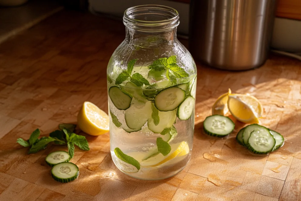 Serve this detox water in tall glasses over ice. You can add extra mint leaves or a slice of lemon on the rim for a pretty touch. It’s perfect for summer parties or just a relaxing day at home!